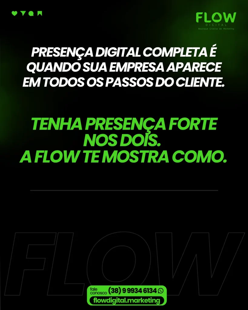 A Flow Digital deixou de ser apenas uma Agência de Inbound Marketing para se tornar uma agência de marketing completa em Curvelo, capaz de integrar conteúdo, tráfego pago, design criativo e consultoria estratégica em um só lugar.